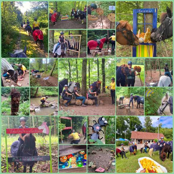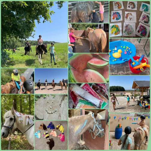 Ausritte und Schnitzeljagd im kühlen Wald, spannende Reiterspiele & Reitstunden, erfrischendes Pferde waschen, kreative Mandalas & Holzpferde