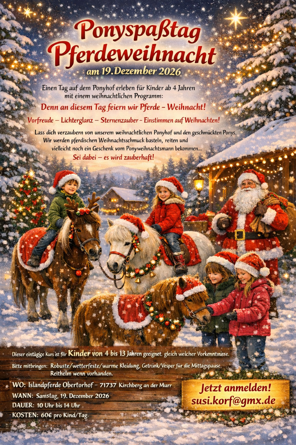 19.12.: Ponyspaßtag Pferdeweihnacht (Obertorhof/Kirchberg) mehr Infos