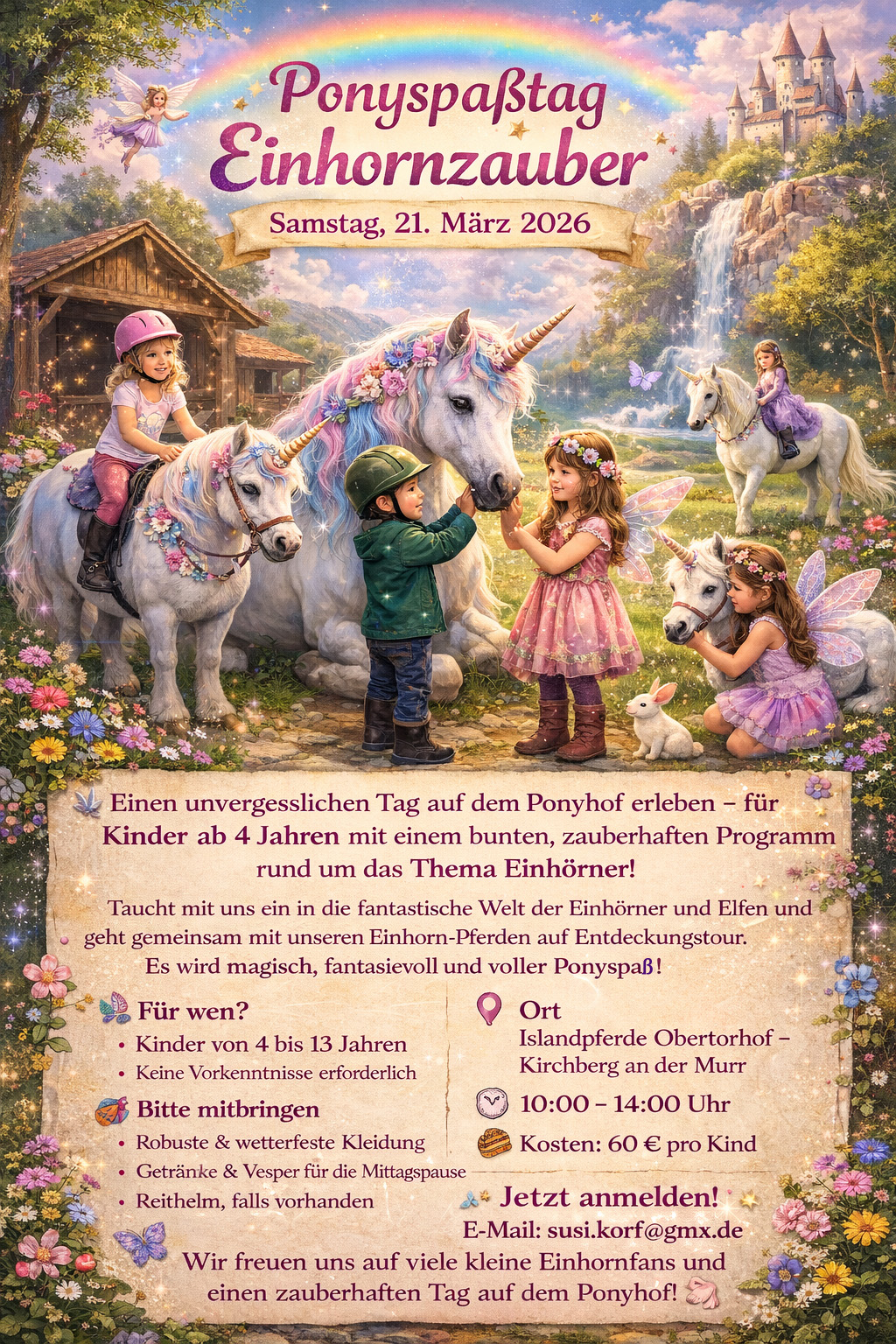 21.03.: Ponyspaßtag Einhornzauber (Obertorhof/Kirchberg) mehr Infos