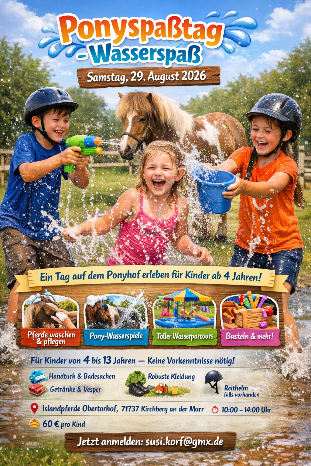 29.08.: Ponyspaßtag Wasserspaß (Obertorhof/Kirchberg) mehr Infos
