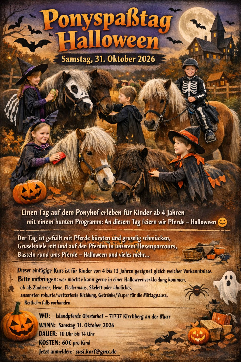 31.10.: Ponyspaßtag Halloween (Obertorhof/Kirchberg) mehr Infos