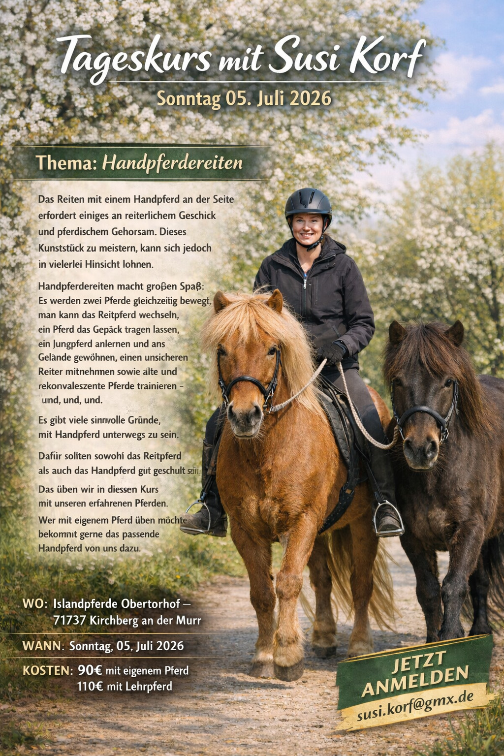 05.07.: Handpferdereitkurs mit Susi Korf (Obertorhof/Kirchberg) mehr Infos