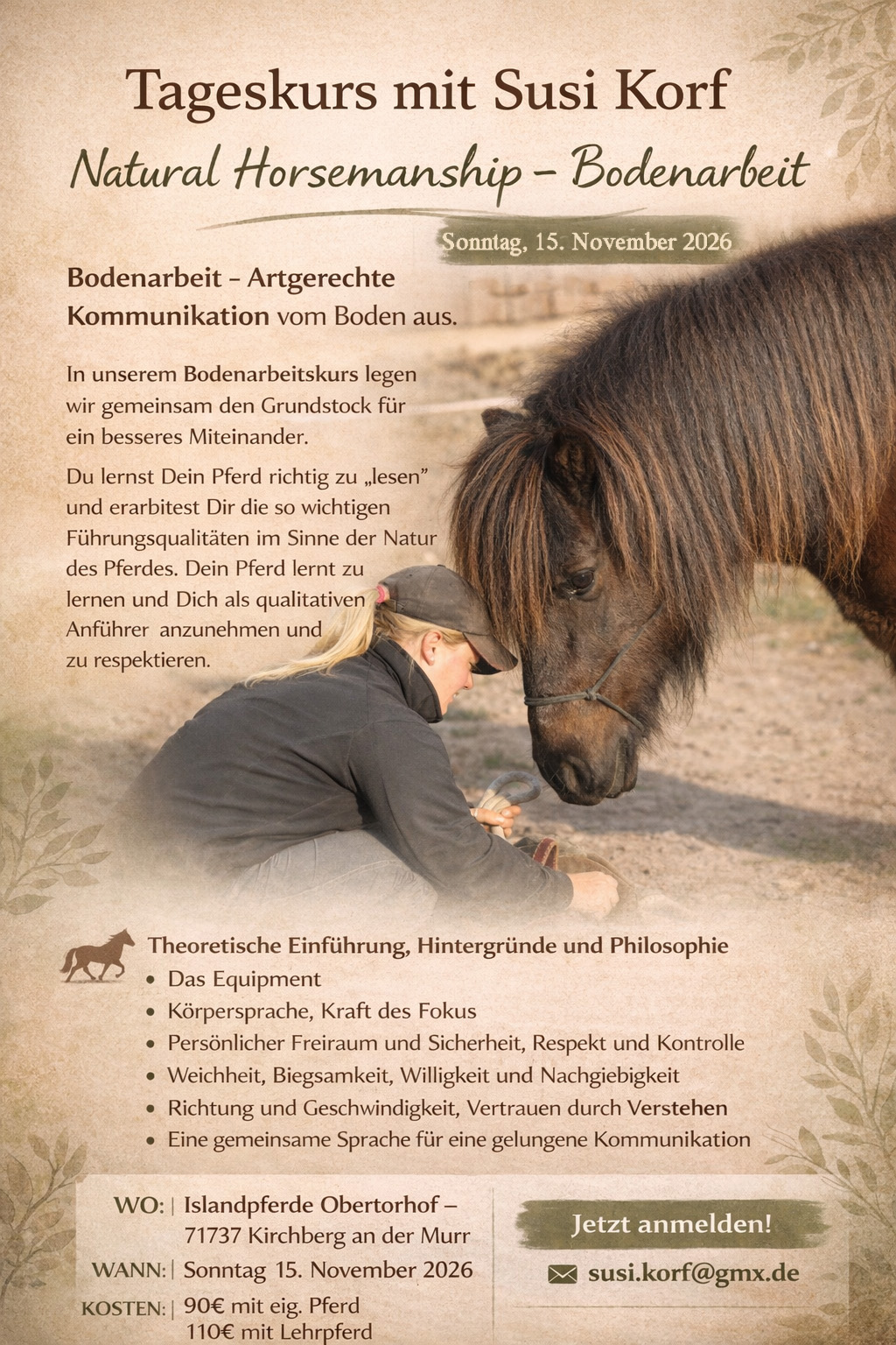 15.11.: Horsemanshipkurs mit Susi Korf (Obertorhof/Kirchberg) mehr Infos