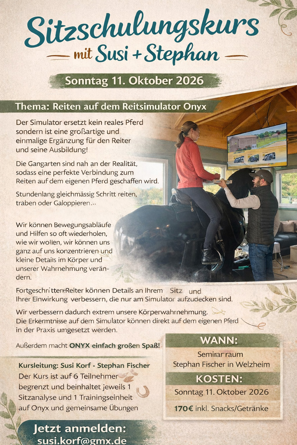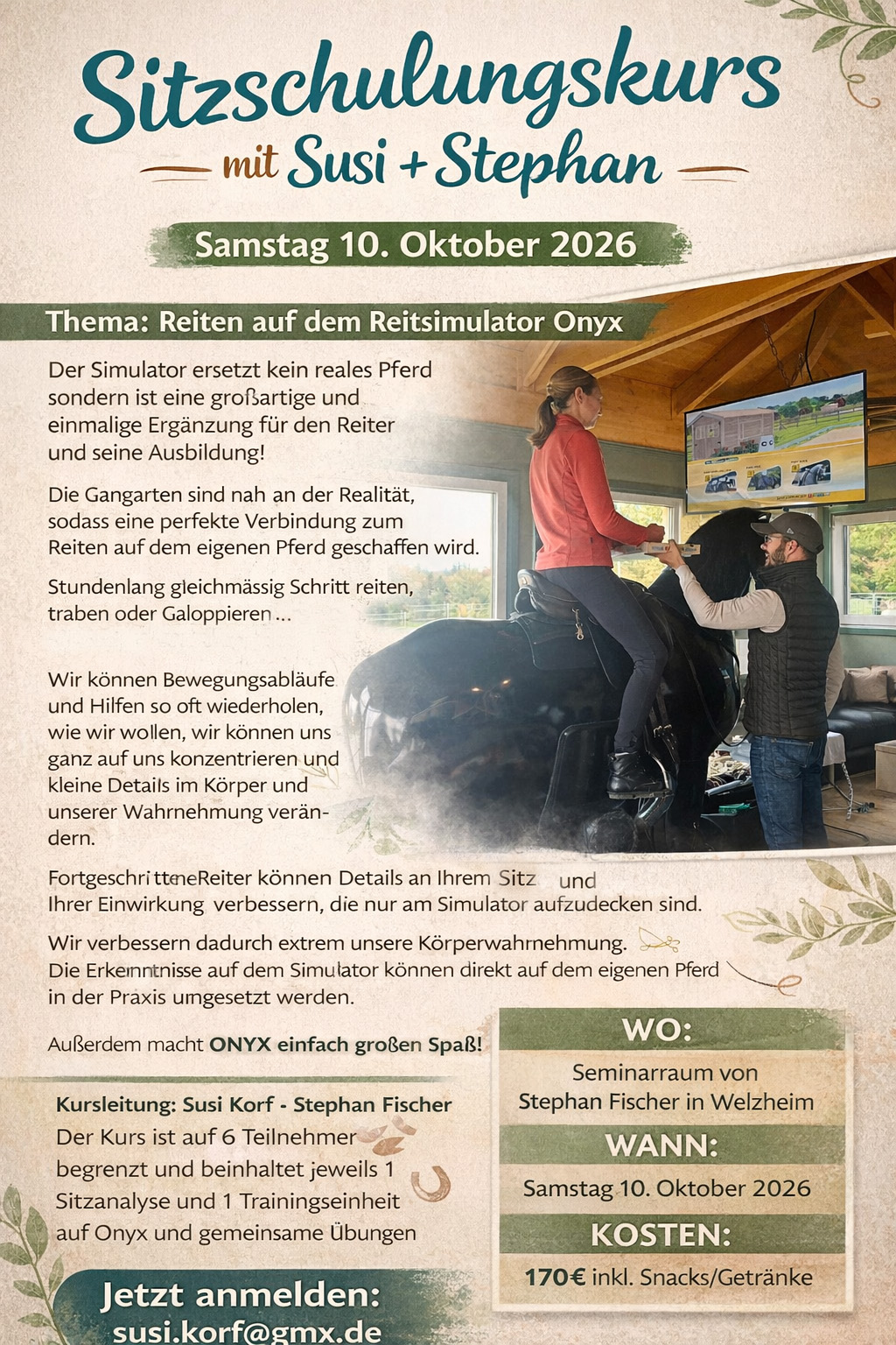 10.10.: Sitzschulung auf dem Reitsimulator Onyx (Welzheim) mehr Infos