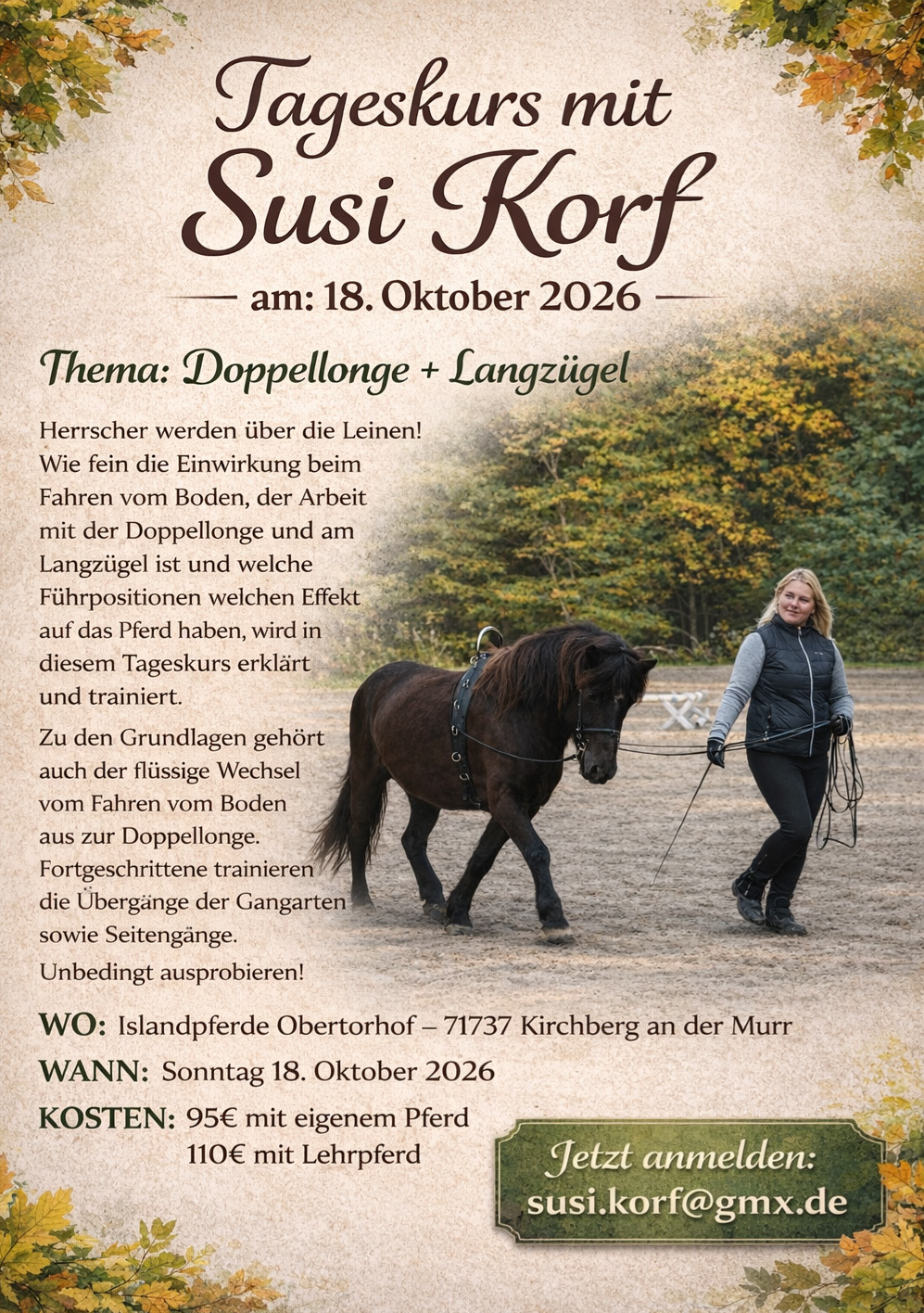 18.10.: Tageskurs Doppellonge mit Susi (Obertorhof/Kirchberg) mehr Infos